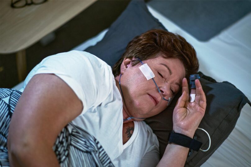 Sömnapnéundersökningen erbjuder en enkel lösning för diagnos av sömnapné. Vid sömnapnéundersökningen som utförs hemma kommer patienten att sätta på sig en lättanvänd mätenhet och placera tre sensorer på angivna ställen vid läggdags.
