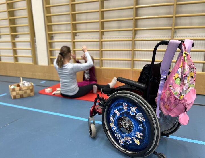 Auroran kuntoutus on monipuolista ja suunnitelmallista. Viikoittainen fysioterapia ja säännöllinen allasterapia ovat muodostuneet tärkeiksi osiksi hänen arkeaan. Vedessä Aurora liikkuu omalla rohkealla tavallaan – ja kehitys on ollut huimaa.
