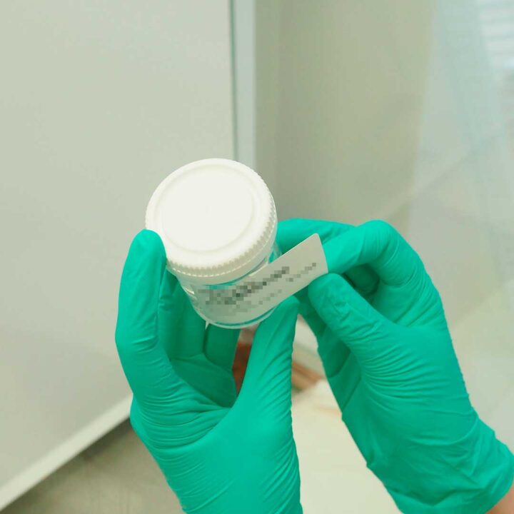 Näyte matkaa näytepurkissa Coronarian laboratorioon postin tai lähettipalvelun kyydissä. Laboratorion työntekijä kirjaa näytteen saapuneeksi, ja näyte saa yksilöllisen tunnistenumeronsa eli näytenumeron. Näytteen vastaanottaja tarkastaa tiedot huolellisesti.