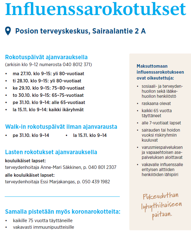 Kiireetön ajanvaraus lääkäreille ja hoitajille p. 016 439 300 ma-pe klo. 8-11.