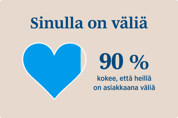 Kysyimme terveyden, suun terveyden ja soten asiakkailtamme myös asiakkuudenhoidon Sinulla on väliä -arvosanaa. Saimme tulokseksi 4,5/5, eli asiakkaistamme 90 prosenttia kokee, että heillä on asiakkaina väliä.